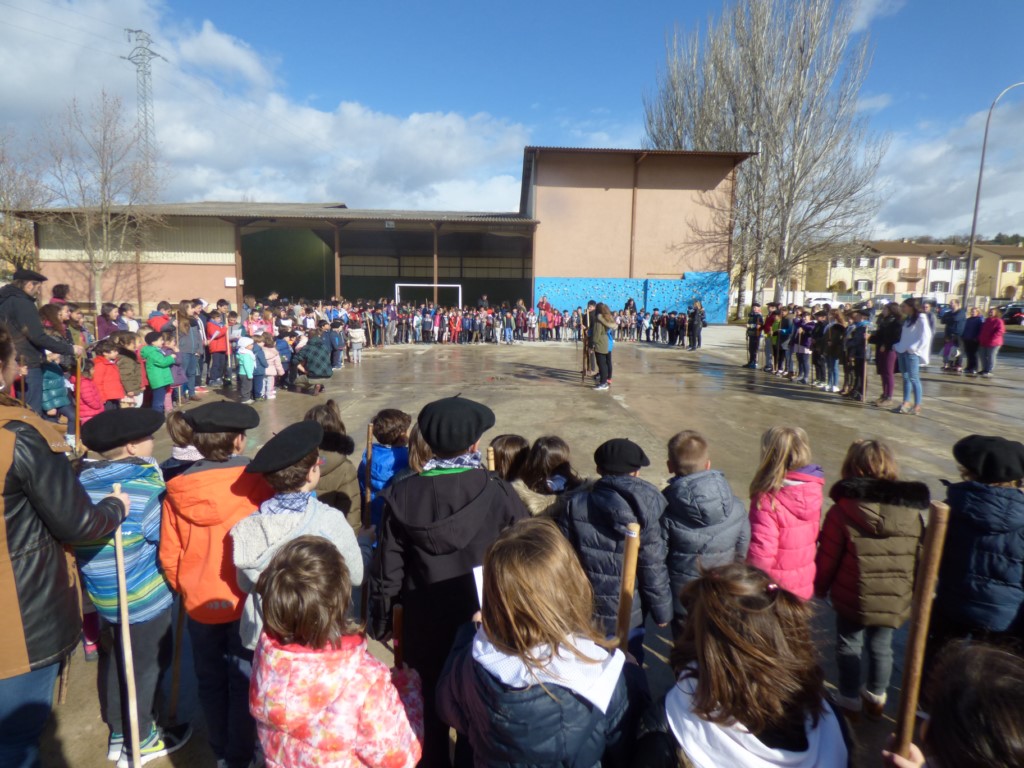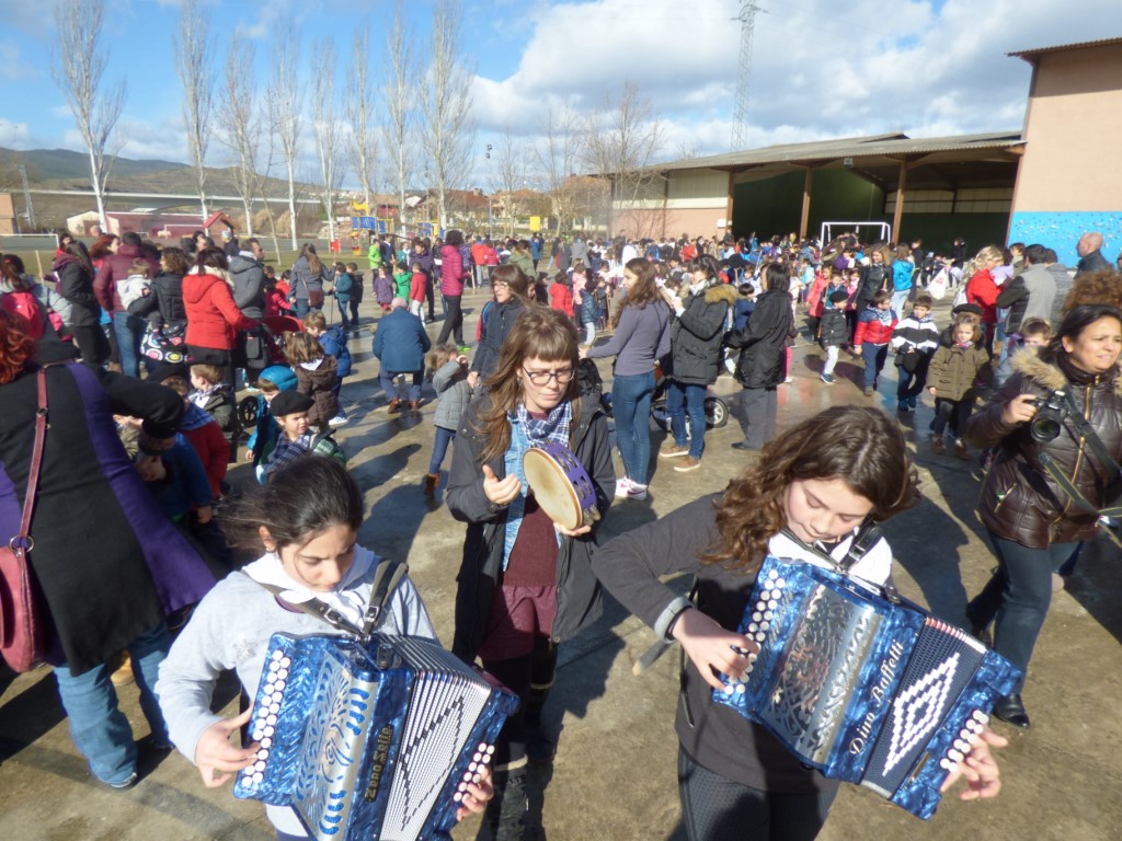 ¡Así celebramos la víspera de Santa Águeda! Debido al mal tiempo, no pudimos salir a cantar por las calles del pueblo, pero lo hicimos (más tarde) en el patio del colegio, en compañía de familiares, música…