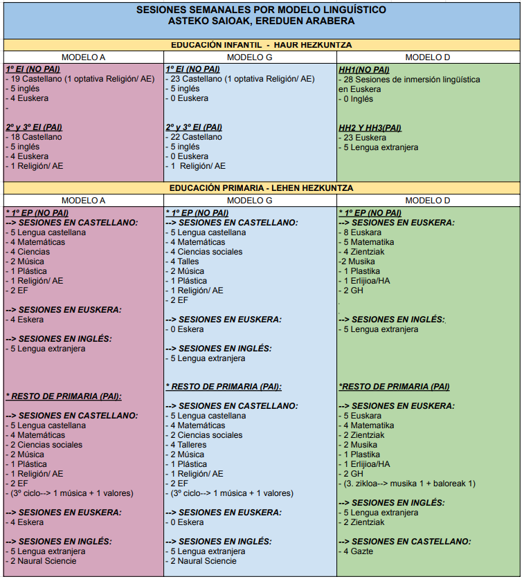 Todos los cursos de 1º, tanto de infantil como de Primaria, ya no cumplen con el programa PAI. El resto de cursos irá saliendo del programa PAI de manera progresiva en los próximos cursos.