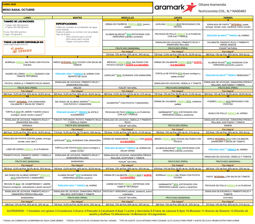 Consulta aquí los menús de este mes