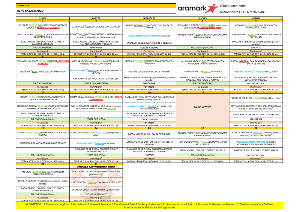 Desde el curso 2021-22, todos los menús serán integramente elaborados en nuestro comedor. Apostamos de esta manera por un comedor saludable, sostenible y más cercanos para nuestro alumnado.